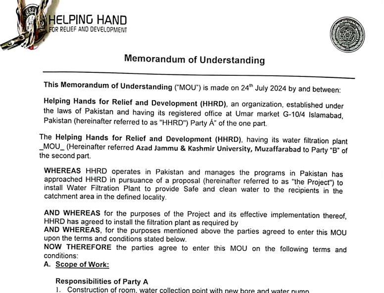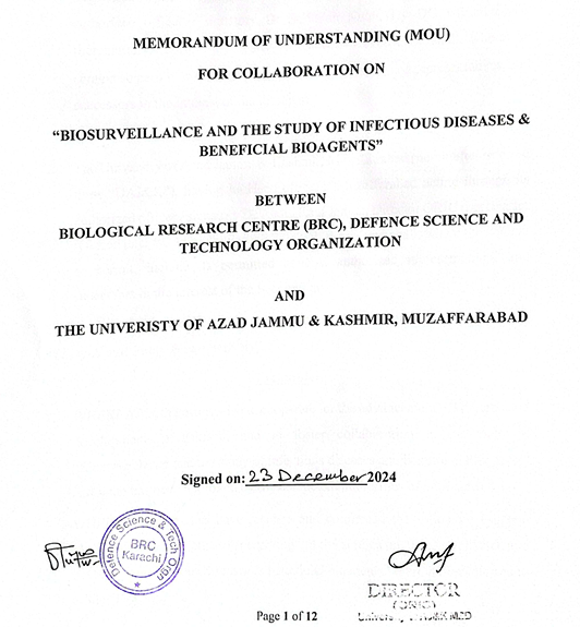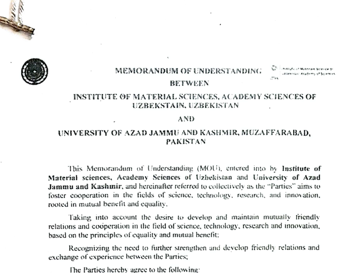 Protocol Agreement between University of Azad Jammu & Kashmir and AMI Cardiac & General Hospital