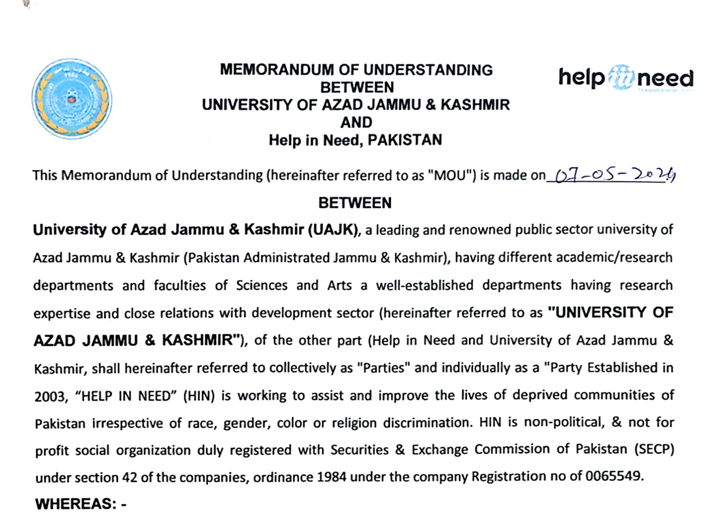 Partnership to support research and development initiatives benefiting deprived communities across Pakistan.