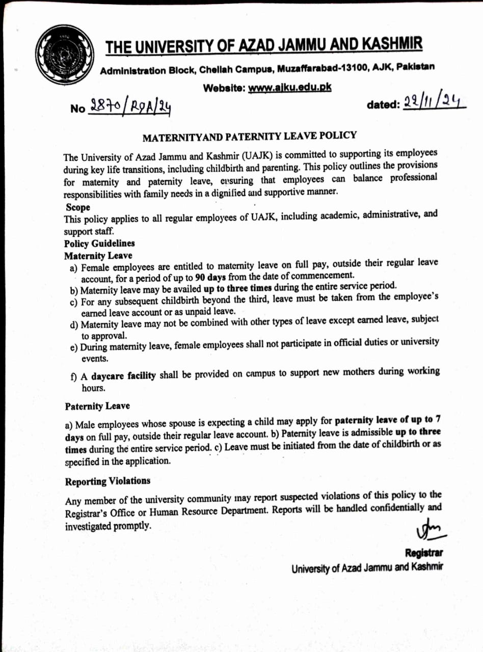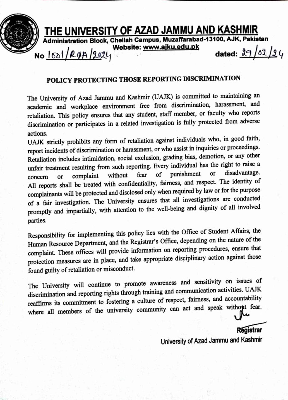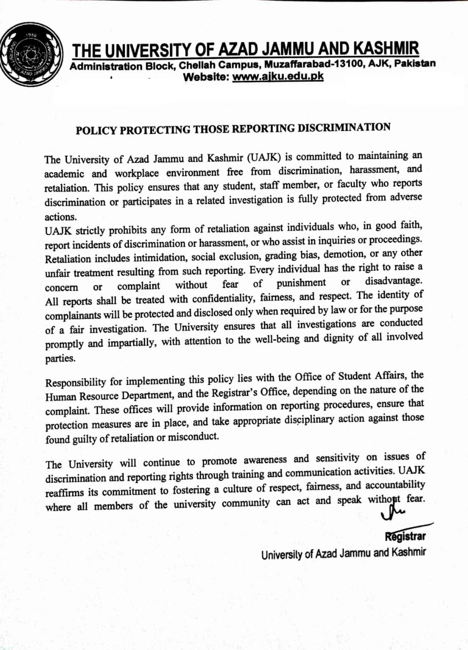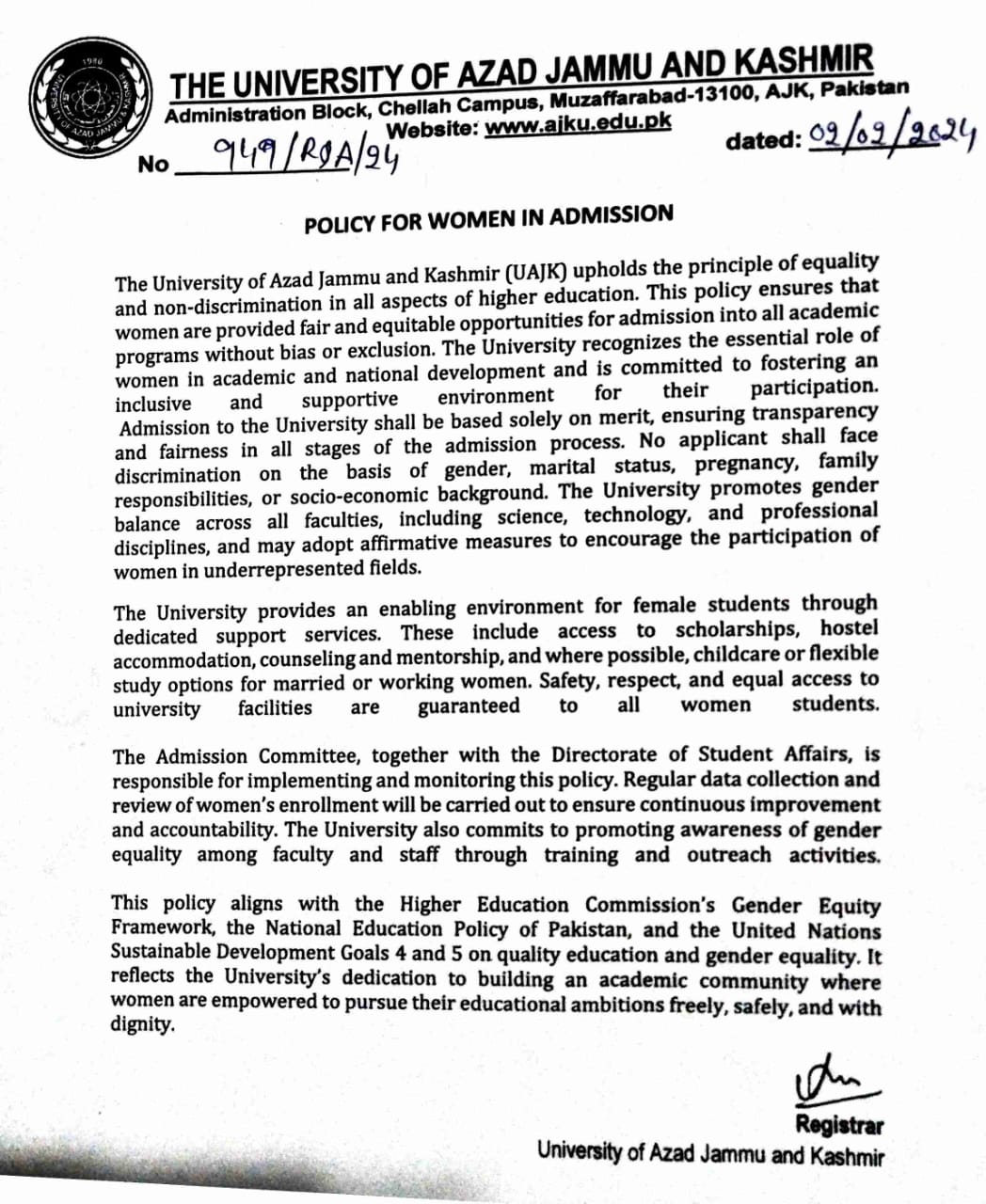 The Policy regarding Gender Equality in the University of Azad Jammu and Kashmir