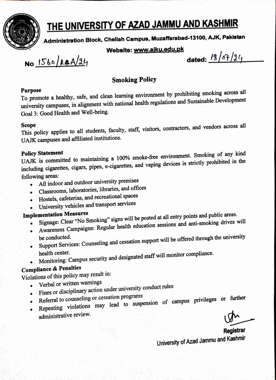 The Scholarship Policy in the University of Azad Jammu and Kashmir
